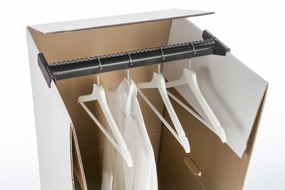 Lassen Sie für den Umzug Ihre Hemden und Jacken am Bügel und hängen Sie diese bequem in unseren Kleiderkarton.